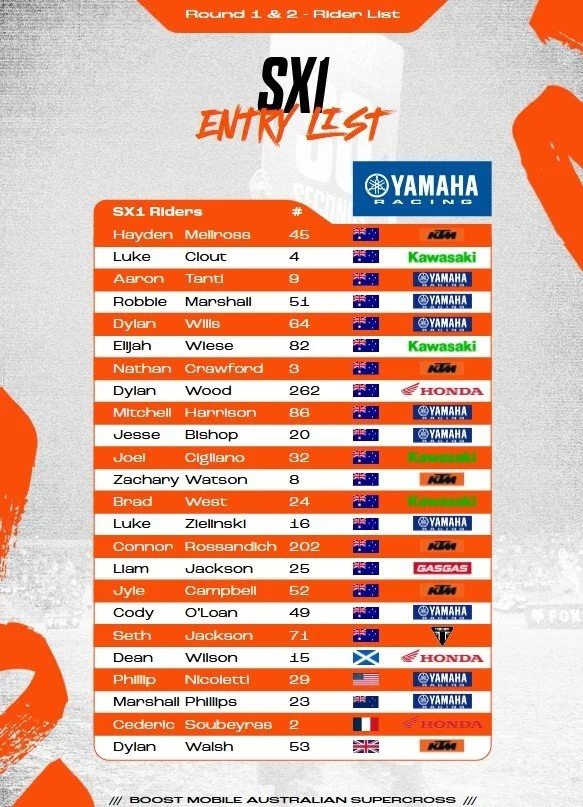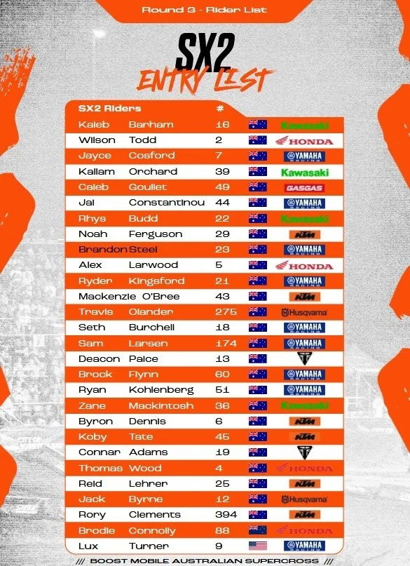 Entry List: 2025 AUSX Round 3 Sydney