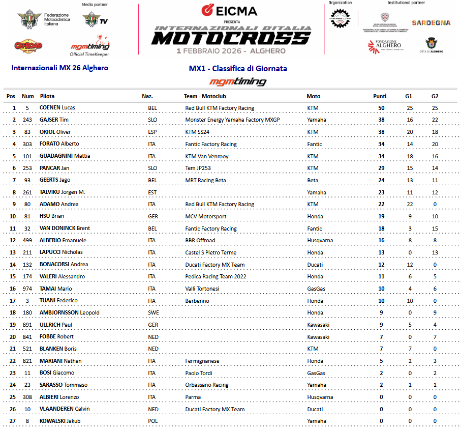 Results: 2026 International Italian Championship - Alghero