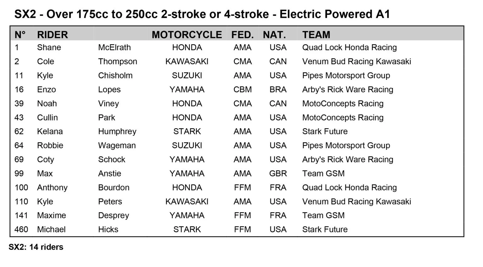 The entry list for the 2025 FIM World Supercross Championship's fifth round has been revealed ahead of the South African GP on December 13th.
